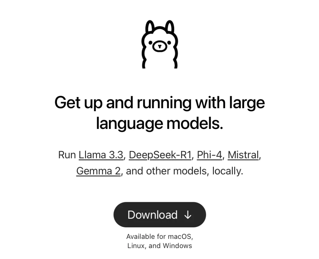第一步安装 Ollama,打开官网 https://ollama.com,点 Download,选择 macOS 版下载即可。把下载的 zip 包解压,并把 Ollama.app 文件放到访达「应用程序」文件夹。