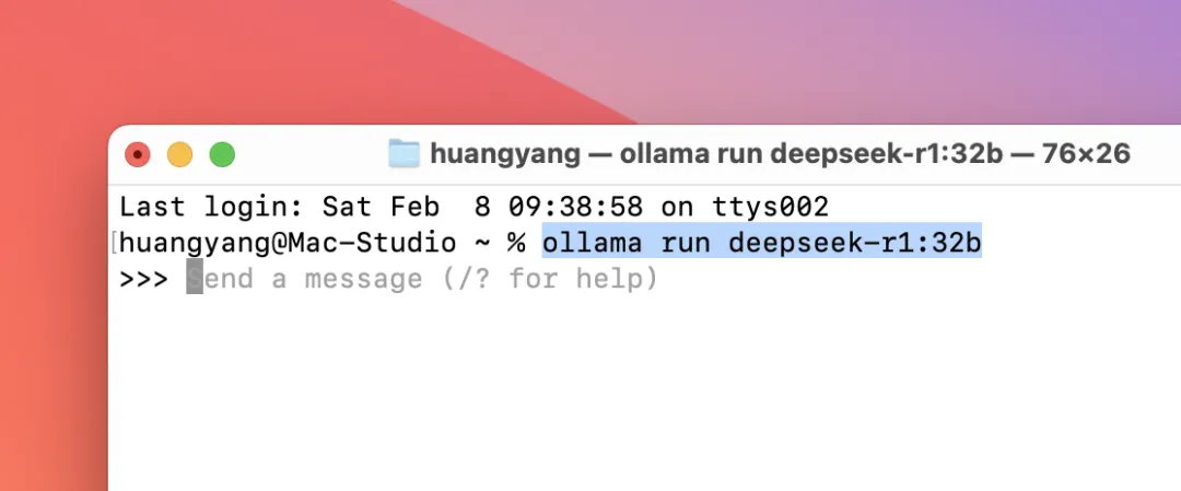 按 control + D 就可以结束对话,下次开启对话就打开终端输入 ollama run deepseek-r1:32b。