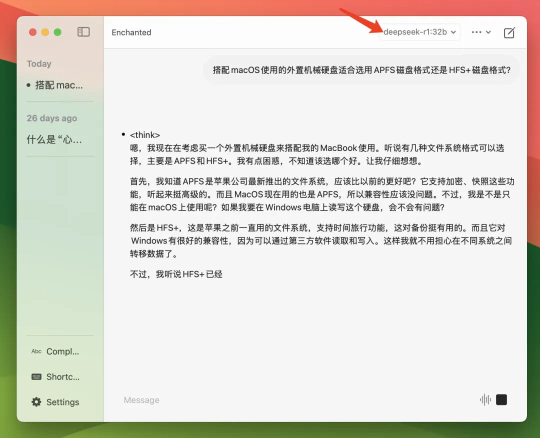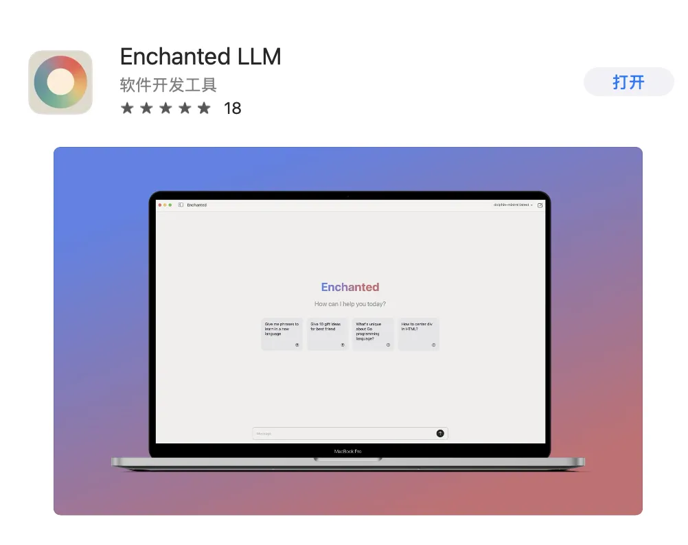 如果你不喜欢通过终端使用,也可以安装 Enchanted 这个免费 Mac 软件(在 App Store 直接下载),它相当于给 Ollama 套了个壳(GUI)。