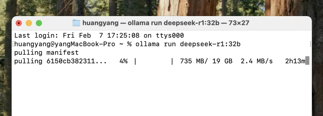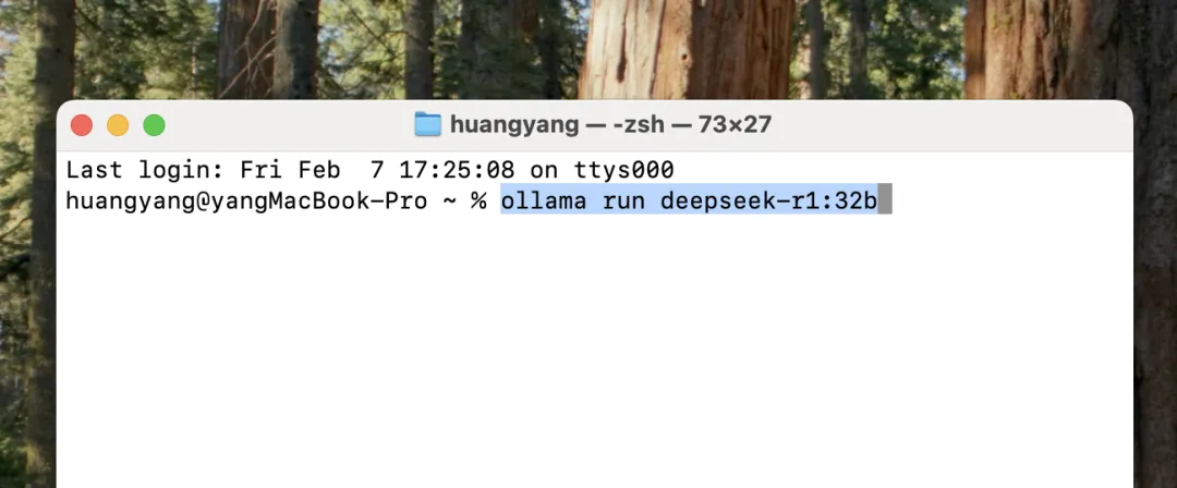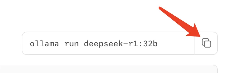 我想先在我这台 MacBook Pro M4 16GB 上试试 32b 蒸馏模型(事实证明不太能跑起来),直接复制 32b 后面的安装命令。